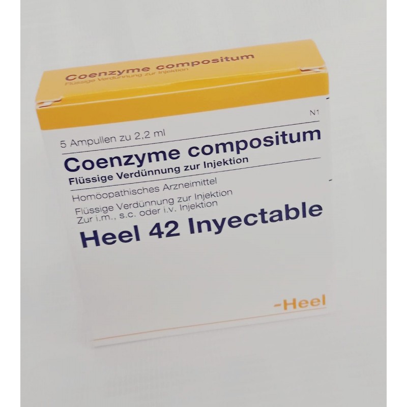 Cada ampolla de 2.2 ml contiene: Coenzyma D8; Acidum Ascorbicum D6; Thiaminum Hydrochloricum D6; Natrium Riboflavinum Phosphoricum D6; Pyridoxinum Hydrochloricum D6; Nicotinamidum D6; Acidum Cis-aconiticum D8; Acidum Citricum D8; Acidum Fumaricum D8; Acidum Alphaketoglutaricum D8; Acidum DL-malicum D8; Acidum Succinicum D8; Barium Oxalsuccinicum D10; Natrium Dethyloxalaceticum D6; Natrium Pyruvicum D8; Cysteinum D6; Pulsatilla Pratensis D6; Hepar Sulfuris D10; Sulfur D10; Adenosinum Tiphosphoricum D10; Nadidum D8; Manganum Phosphoricum D6; Magnesium Oroticum D6; Cerium Oxalicum D8; Acidum DL-alpha-liponicum D6; Beta Vulgaris Conditiva D4 cada 22 mg aa.